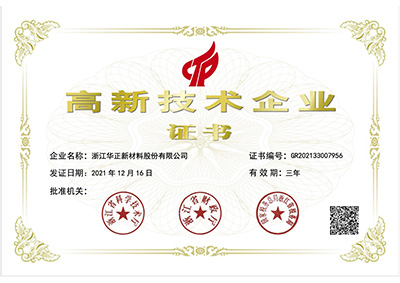 2009年3月,華正新材榮獲“國家高新技術企業”稱號
